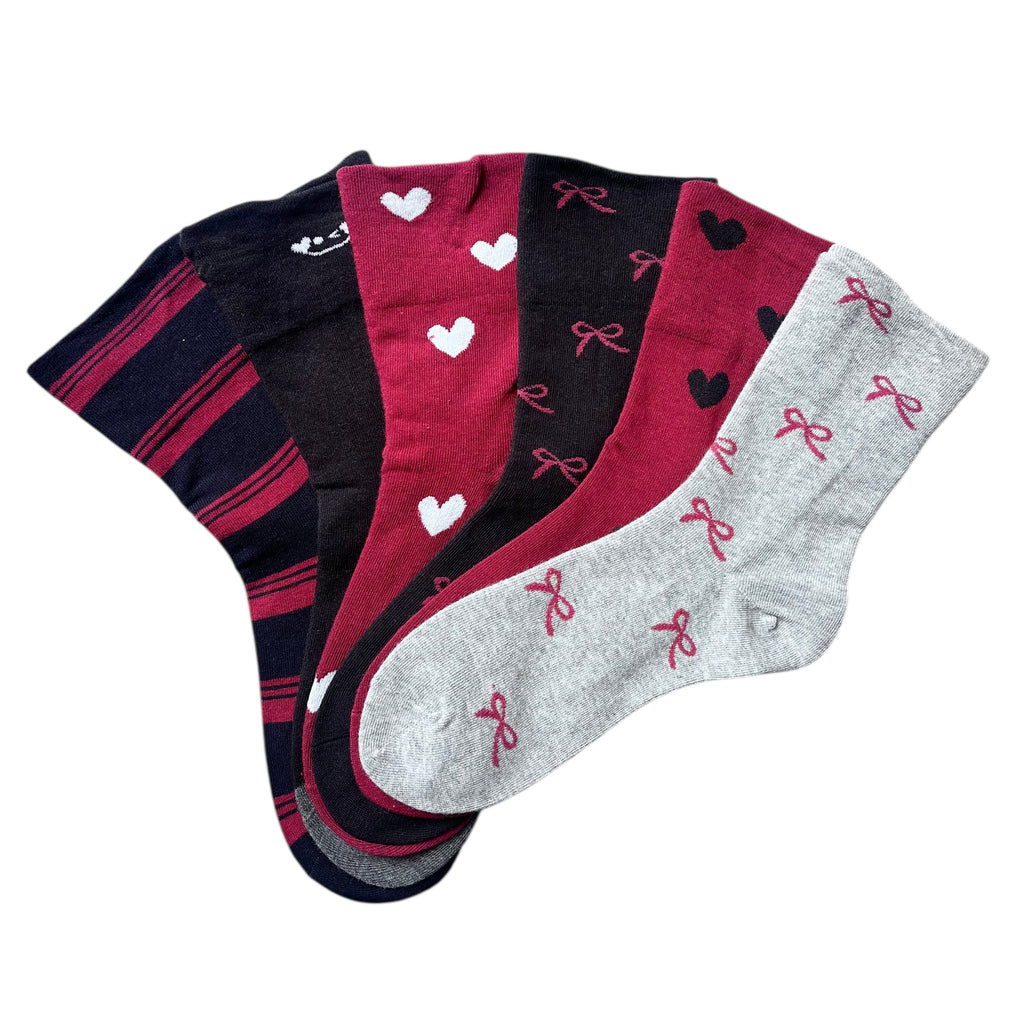✔ 6 parov ženskih nogavic z različnimi vzorci v kombinaciji s črno, sivo in brodo barvo