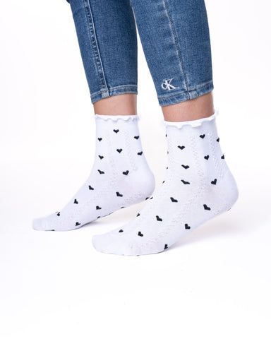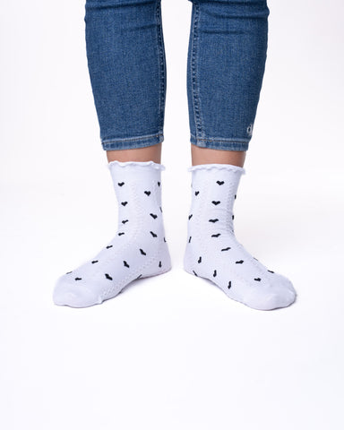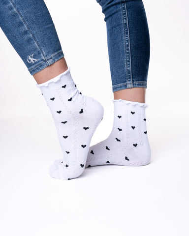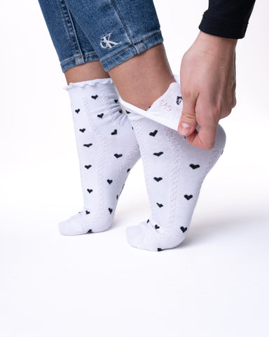 ✓ 6 parov ženskih polvisokih nogavic brez elastike, enobarvne s srčki in reliefno pletenim vzorčkom