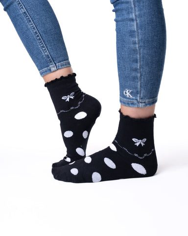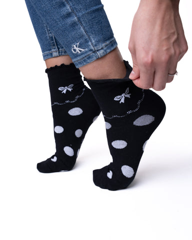 ✓ 6 parov ženskih polvisokih nogavic brez elastike s pikicami in mašnami