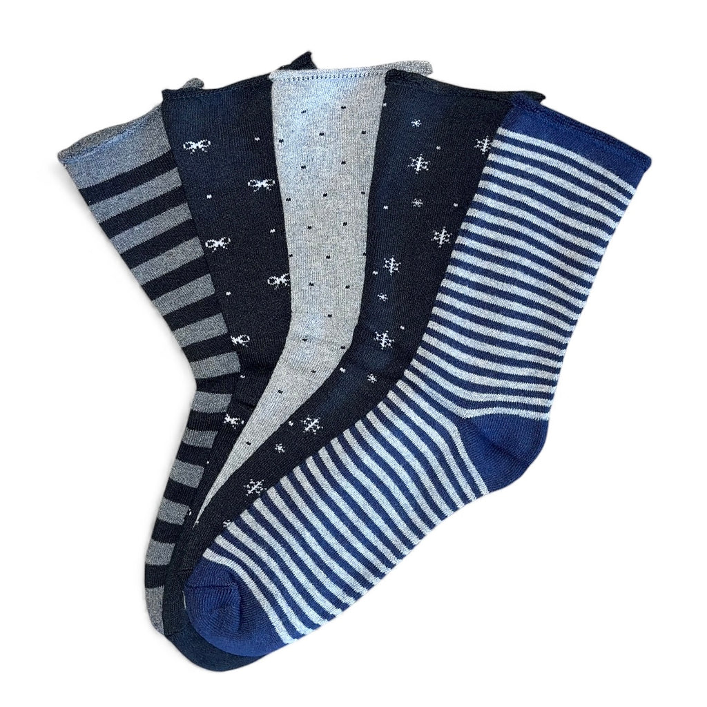 5 parov debelih termo ženskih nogavic brez elastike, temne različni vzorci 5821